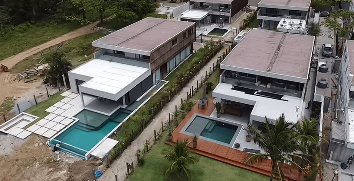 Em um terreno de 14.000 m² de frente para o mar no meio da praia de Maresias, com projeto do Gui Mattos, o Condomínio Reserva Maresias será composto por 12 casas de 568 m² cada.